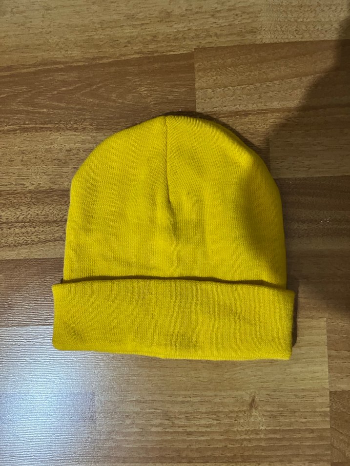 Kadınlar için örgü sarı bere, yumuşak ve sıcak kumaşa sahiptir. Rahat ve sade bir stile uygundur.