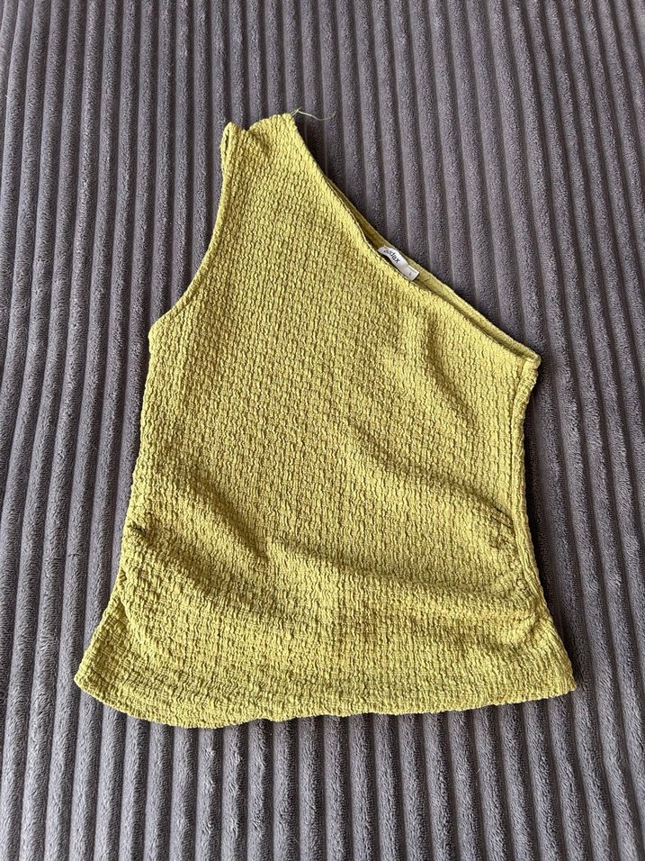 Kolsuz, fıstık yeşili renkli, keten kumaştan örülmüş, bohem tarzda, vücuda oturan rahat şık kadın bluz. Günlük kullanıma uygundur.