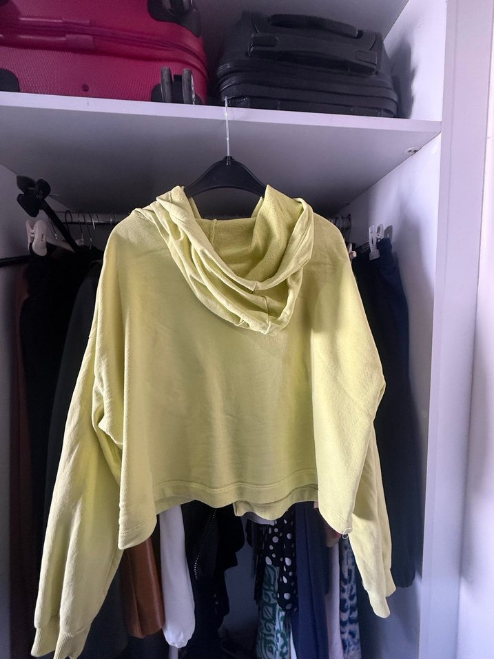 Kadın Sarı Salaş Kapüşonlu fermuarlı kısa sweatshirte