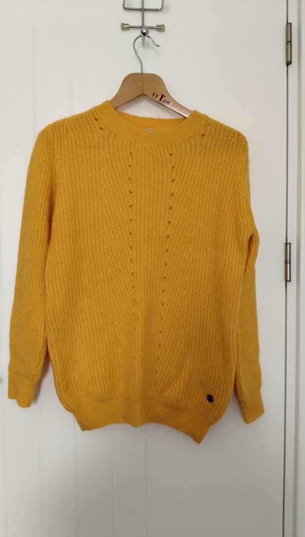 loft markaKadınlar için parlak sarı renkli, yuvarlak yakalı ve uzun kollu triko kazak. Rahat kesimli, günlük kullanıma uygun sıcak ve şık bir model.