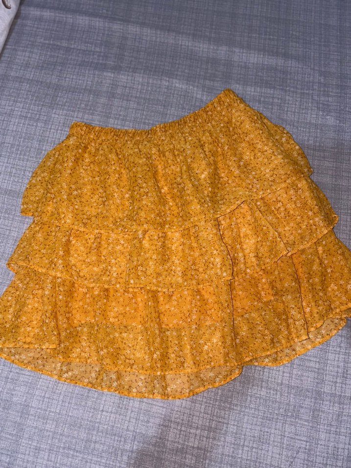 Kadın Sarı Volanlı Mini Etek