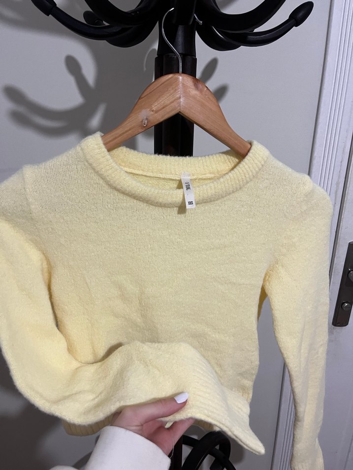Fitted kesim, bisiklet yaka ve uzun kollu sarı yünlü kazak, yumuşak ve rahat dokunuşlu örgü kumaştan yapılmıştır. Pastel tonları ve midi uzunluğu ile sade, günlük kullanıma uygun. S m olur