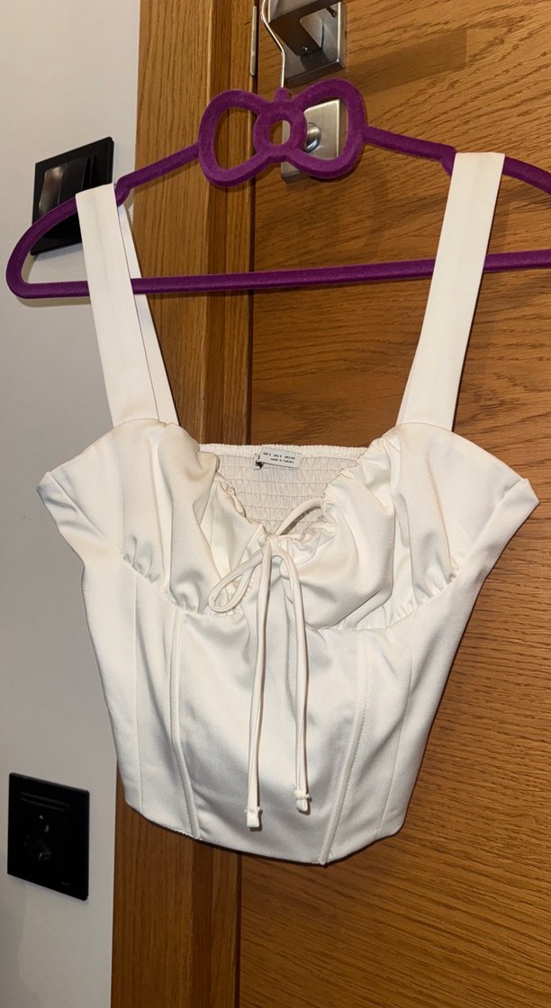 Saten kumaşlı, bel kısmında hafif vücuda oturan bir üst