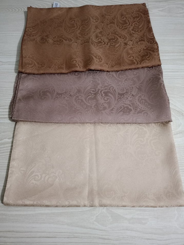 Kadın Saten Şal Seti - Kahverengi, Gri, Bej