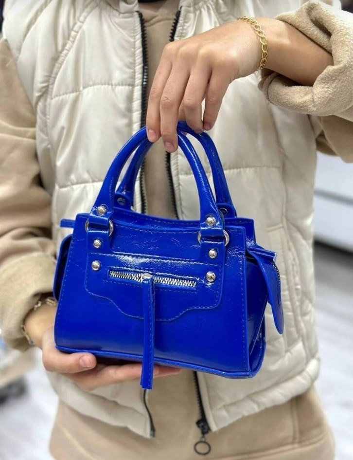 Mavi deri kadın çantası, fermuarlı cep ve desenli tasarımıyla Paris sokak modasına uygun trend casual stil sunar. Günlük kullanıma uygundur. Az kullanıldı