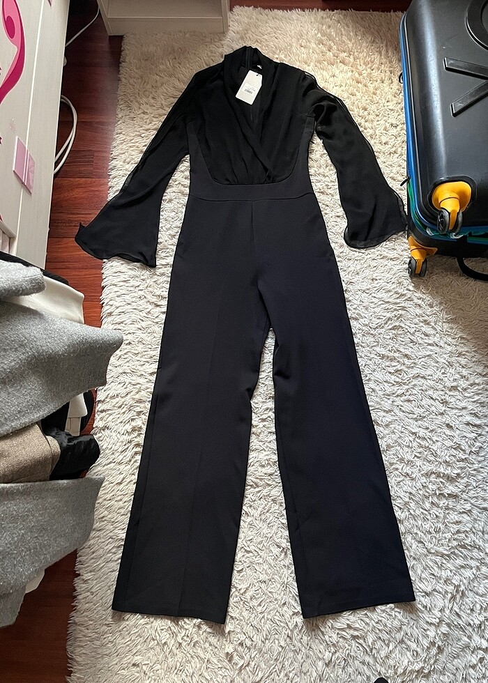 Kadın şık abiye uzun siyah tulum