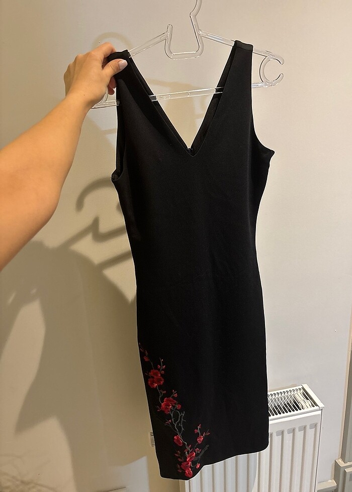 Hiçbir kusuru yok görüldügü gibi derin v degil cok şık duruyor tam dizde bitiyor 36 beden