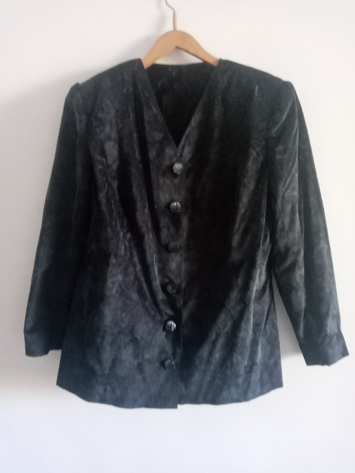 Simli Desenli Lacivert Süet Ceket. Özel bir gün için annemin terziye diktirdiği bir ceket. Şık dügmeli. 1 kere giyildi. Sökülebilir vatkalı. Boy: 65 En 96 cm