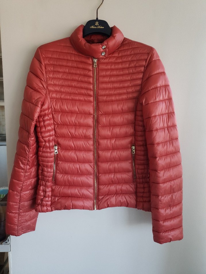 Koton marka 34 beden kadın şisme mont. 45 cm genişlik ölçüsü. iç cepleri vardır. %100 polyamid kumaştır. sağ kolun iç tarafında deformesi var son görsele ekledim. hafif parlak bi rengi var