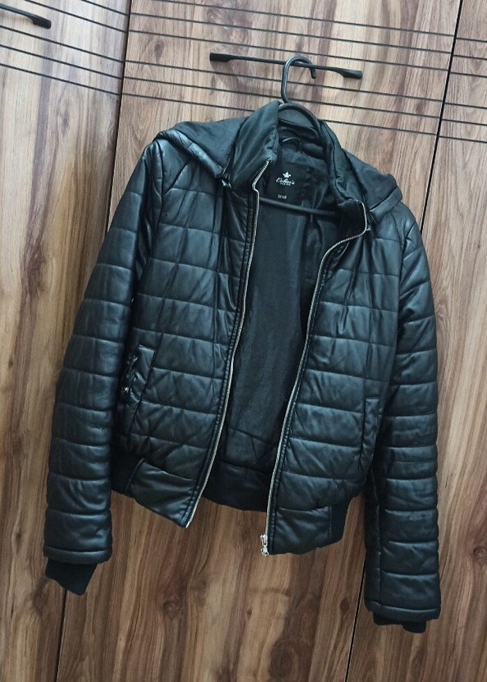 Temiz kullanılmış hem deri hem şişme arası tarz mont. S-M uyumludur.kapsonu çıkarılabilir.