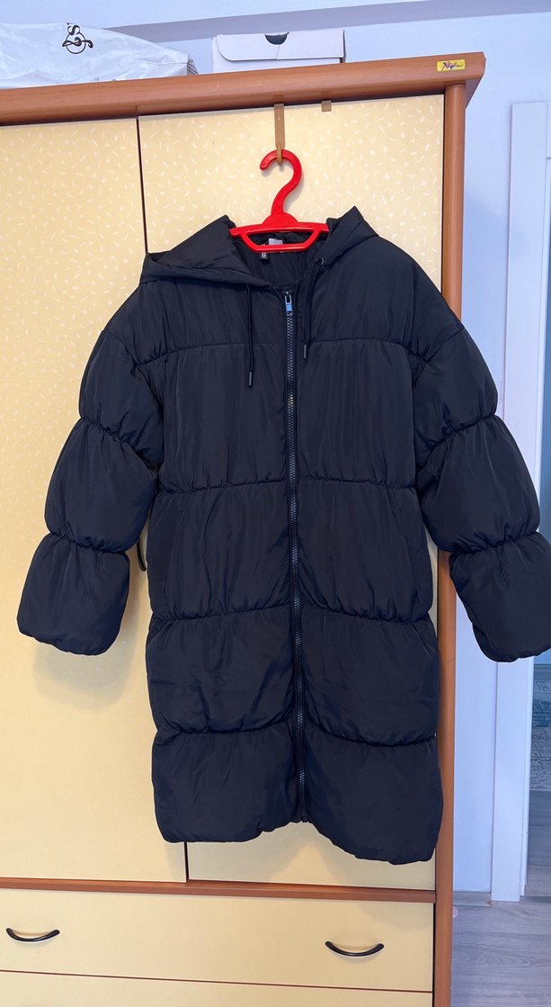 Fermuarlı ve kapüşonlu, siyah renkli, soft ve sıcak kumaştan yapılmış, midi boy, günlük kullanıma uygun sokak tarzı kadın kışlık mont. Sorunu yok fazlalıktan satılık teklif verebilirsiniz ben s bedenim oluyor kalıbı geniş olduğu için küçük beden almıştım
