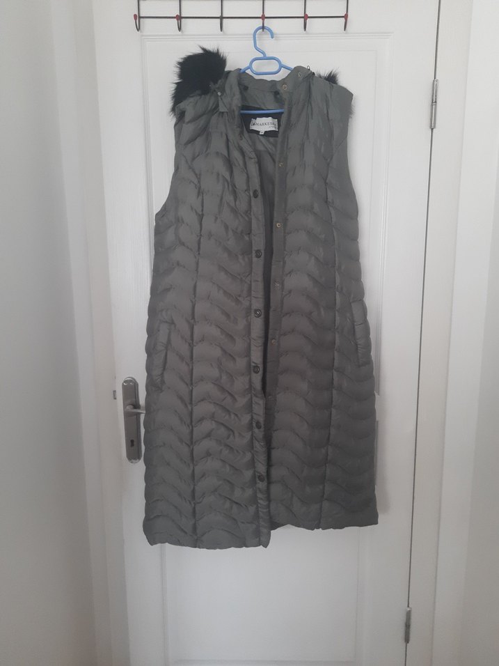 ürünün rengi parlak haki yeşili.kullanışlı güzel bir ürün. rengi çok hoş boyu 106 santim, eni 52 santim. içinde elle dikilmiş bir yer mevcut fotoda belirttim.ürünün arka tarafında bir takılma yeri vardı ben bulamadım o yüzden fotoğraf çekemedim.Çok belirgin değil. bunun dışında şapkası citcitlari sağlam. Yeni gibi duran bir ürün