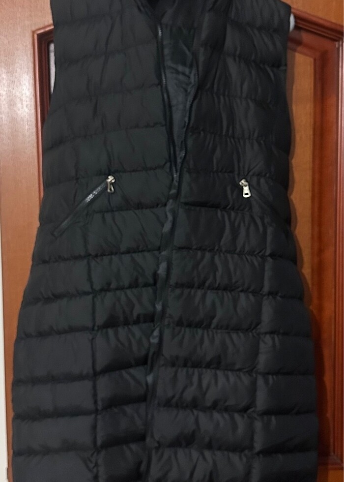 Kadın şişme yelek önü fermuarlı 2 cepli fermuarlı ucu tüylü kapşün boyu 95 cm omuz 42 cm