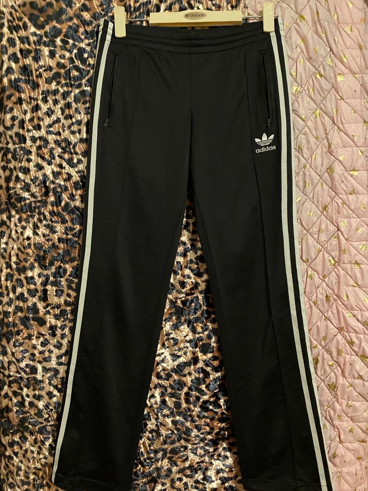 Kadınlar için Adidas marka, fermuarlı cepler ve yan şeritlere sahip, sentetik kumaştan üretilmiş, bol kesim siyah eşofman altı. Spor ve günlük kullanım için uygundur. ♀️