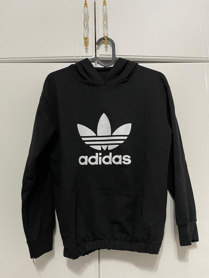 Siyah renkli Adidas sweatshirt, rahat kesim ve uzun kolludur. Yumuşak ve sıcak kumaştan üretilmiş, baskılı logo ile günlük stil için uygundur.