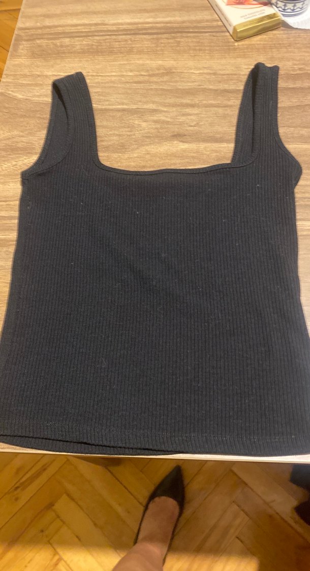 Bu siyah, kolsuz ve tekdüze yapıya sahip bluz askılı , likralıdır .Rahat ve şık sokak stili için uygundur.