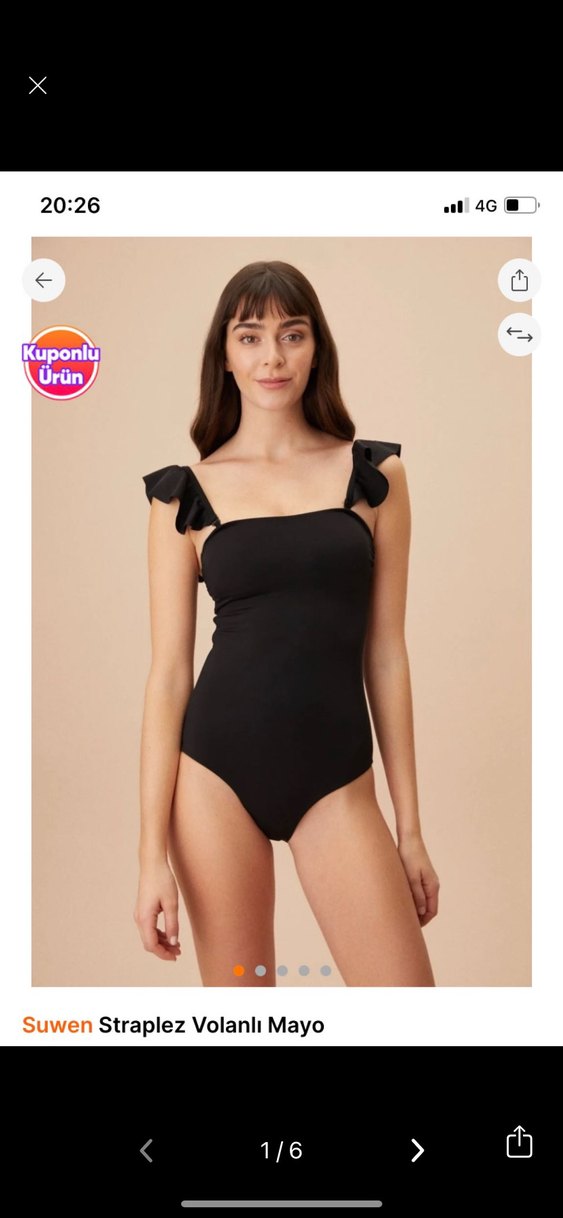 Siyah, askılı ve vücuda oturan bu mayo, çağdaş tarzıyla dikkat çeker. Midi boyu ve rahat kesimiyle plaj için idealdir. ️