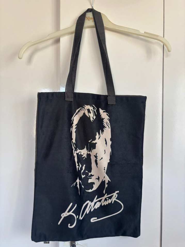 Kadın Siyah Atatürk Baskılı Bez Çanta