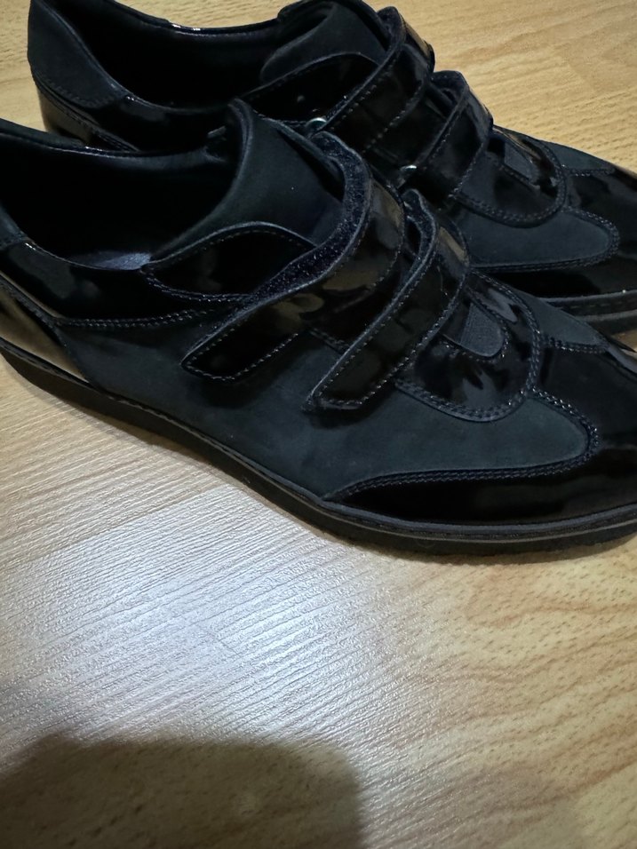 Siyah renkli, süet ve rugan karışımı.Sokak stili ve günlük kullanım için uygundur. Sadece bir kez giyilmiştir.