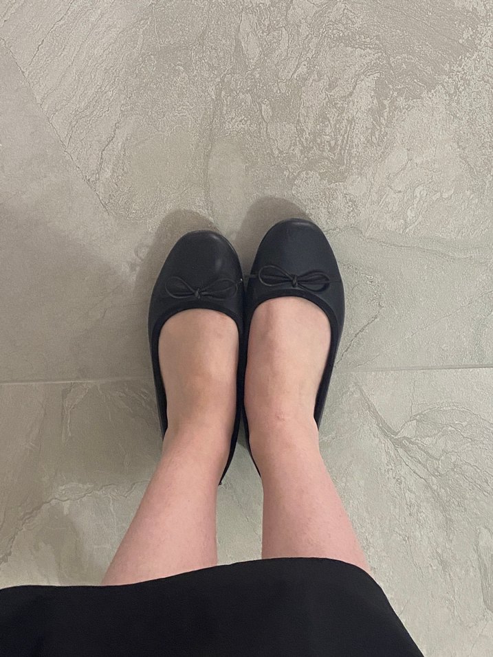 Siyah topuklu babet ayakkabılar, rahat kauçuk malzemeden üretilmiş, minimal tasarıma sahip ve günlük kullanım için şık bir seçenektir.