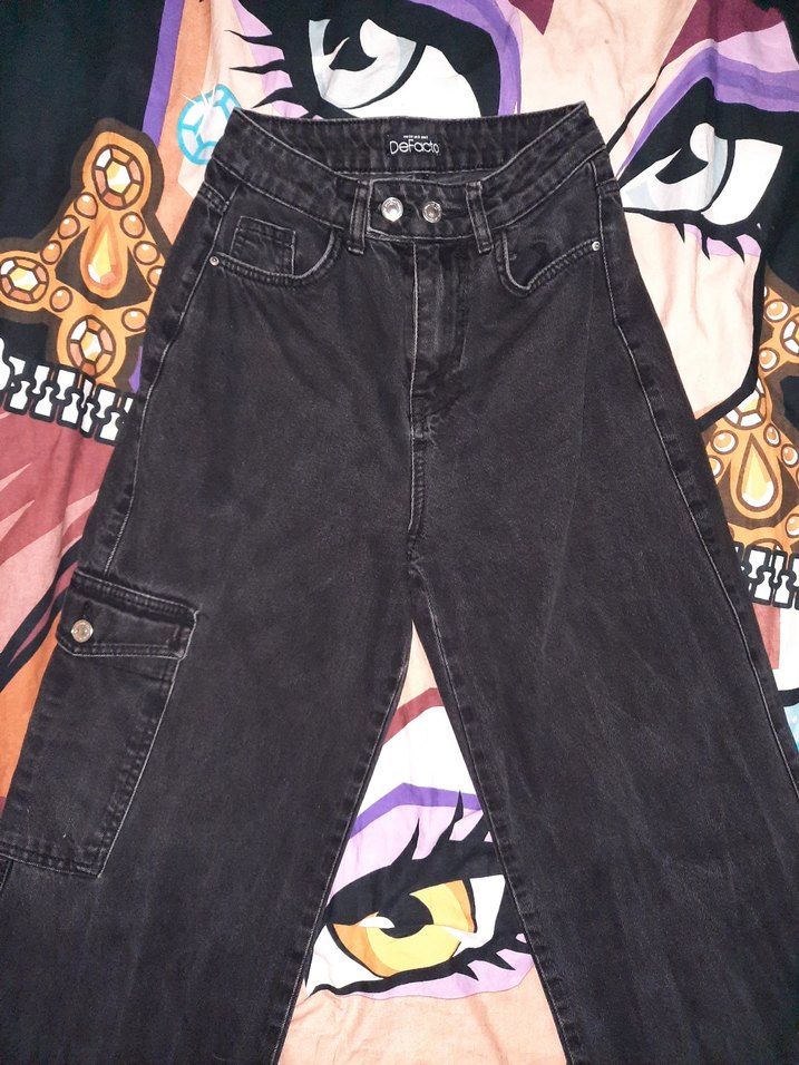 Kadın Siyah Bağcıklı Loose Fit Denim Pantolon