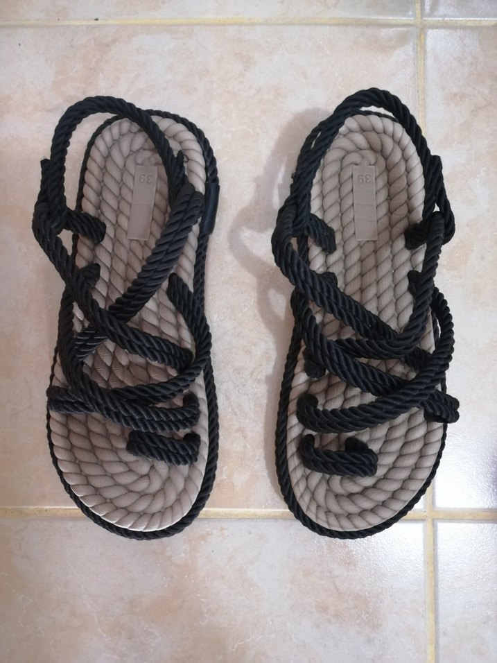 Kadınlar için siyah bağcıklı, yumuşak kauçuk tabanlı minimalist ve bohem tarzda sandalet, günlük kullanım için uygundur. Marka temsilidir