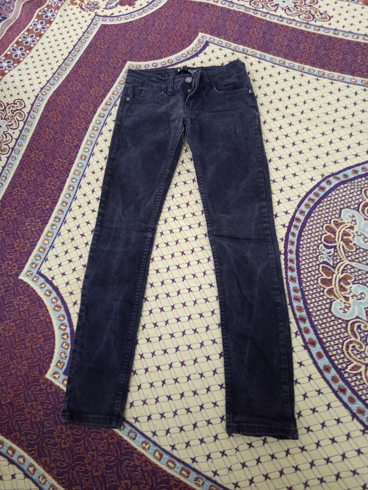 Kadın Siyah Bağlama Desenli Dar Kesim Jean
