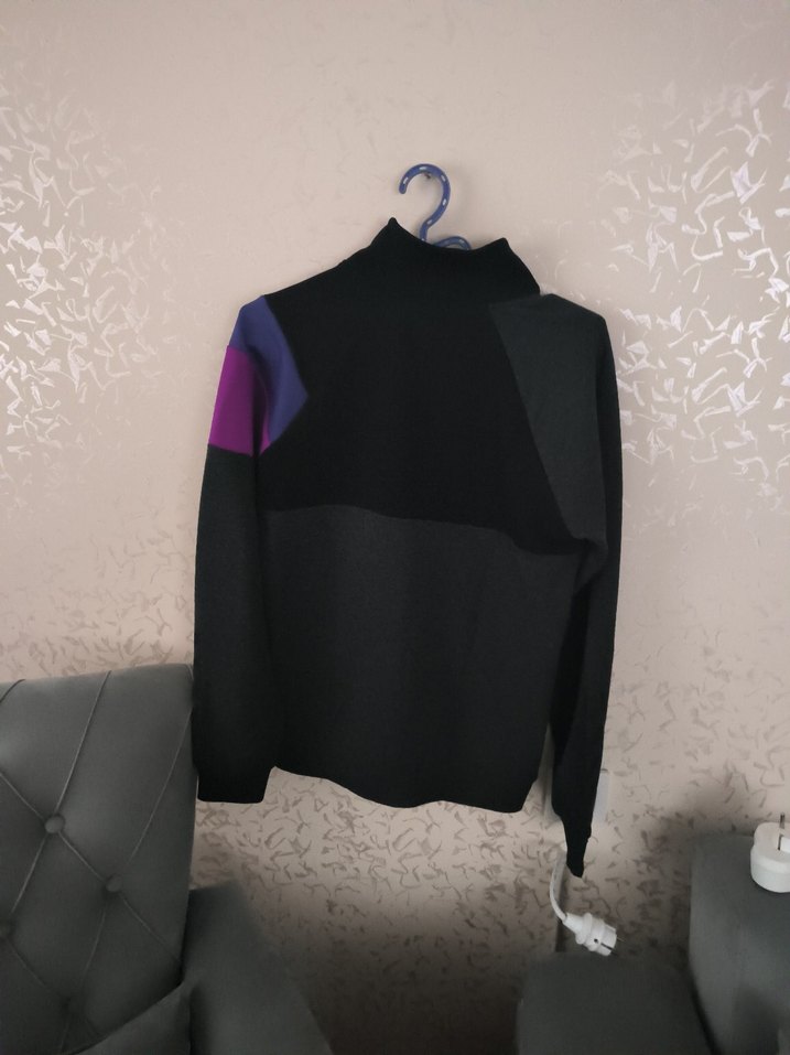 Kadınlar için siyah balıkçı yaka, uzun kollu, fit kesim sweatshirt. Kolunda cırt cırt detay bulunur, yumuşak ve sıcak kumaştan üretilmiştir.