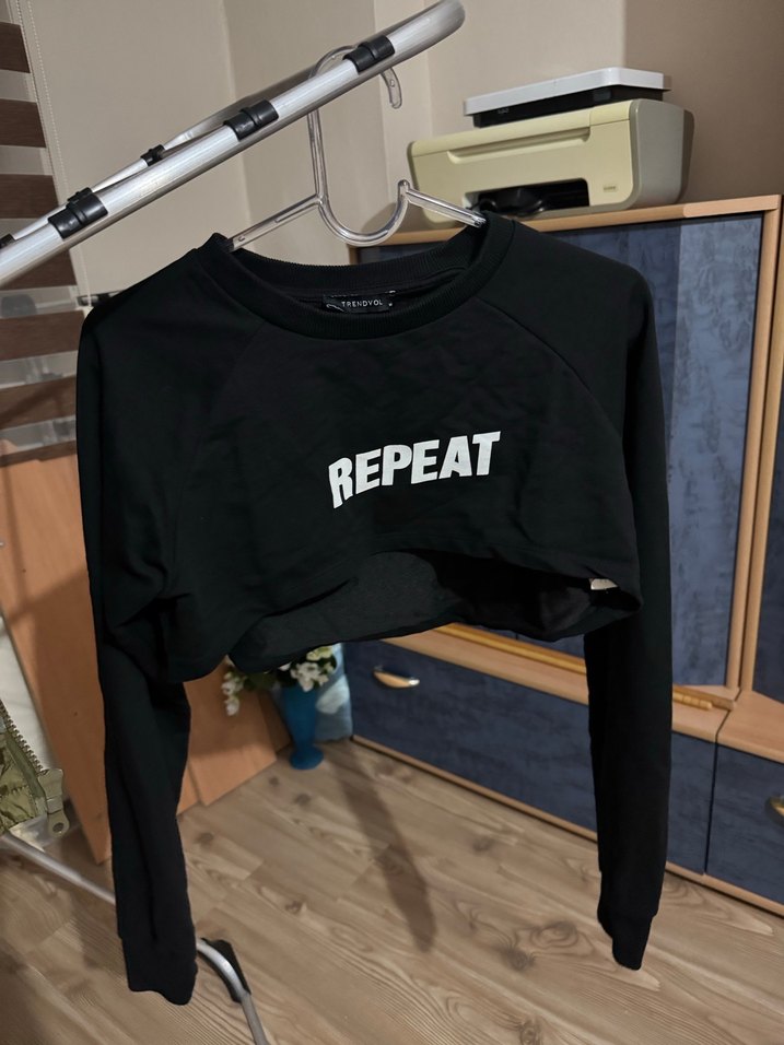 Kadın Siyah Baskılı Crop Sweatshirt