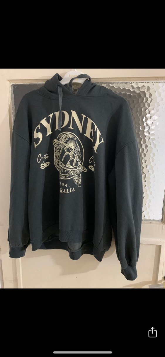 Kadın siyah sweatshirt, uzun kollu, bol kesim, yuvarlak yaka, baskılı Sydney kaplumbağa deseniyle. Yumuşak, ipeksi ve örme kumaştan, günlük rahat kullanım için uygun.
