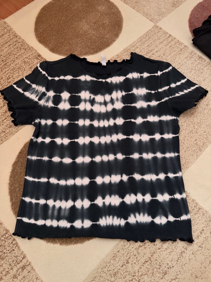 Kadın Siyah Batik Desenli Kısa Kollu Bluz
