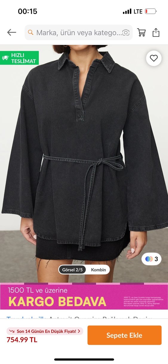 Siyah denim kumaştan, V yakalı, uzun kollu, bol kesim ve belden bağlamalı tunik. Günlük kullanıma uygun, rahat ve şık bir sokak stili sunar. M bedendir sıfır gibi hiçbir sıkıntısı yoktur bol olduğu için satıyorum