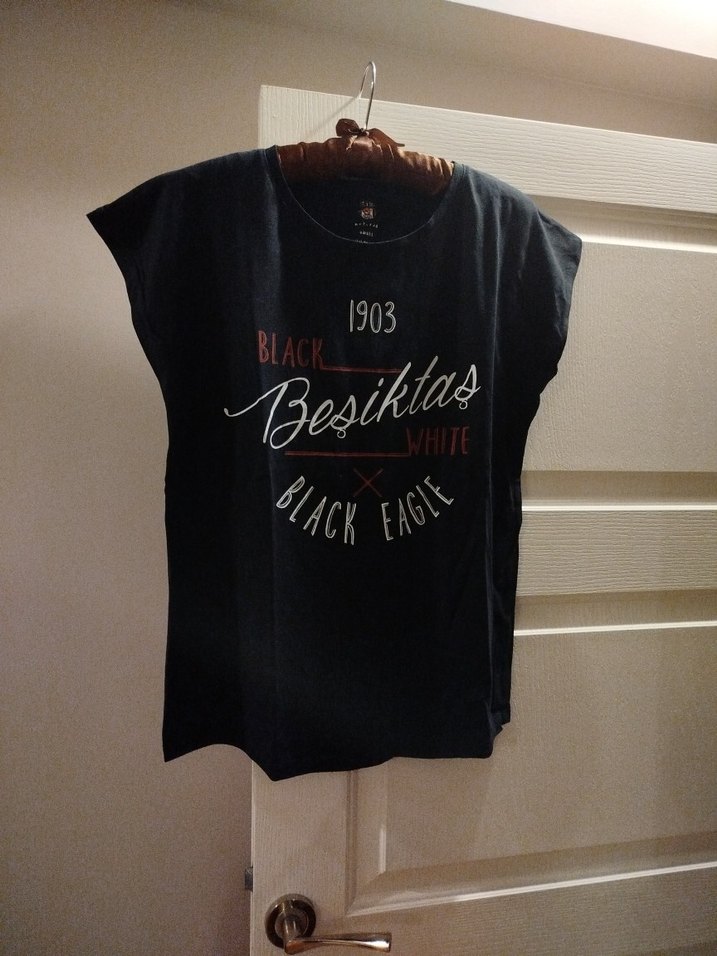 Pamuk kumaştan, kısa kollu ve salaş kesim siyah T-shirt. "Besiktas 1903 Black Eagle" baskılı, rock punk sokak tarzı için uygun.