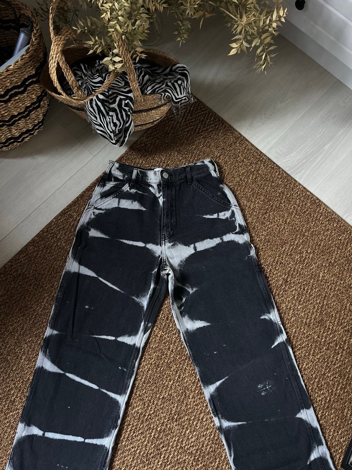 Kadın Siyah Beyaz Bağlama Desenli Bol Kesim Denim Pantolon