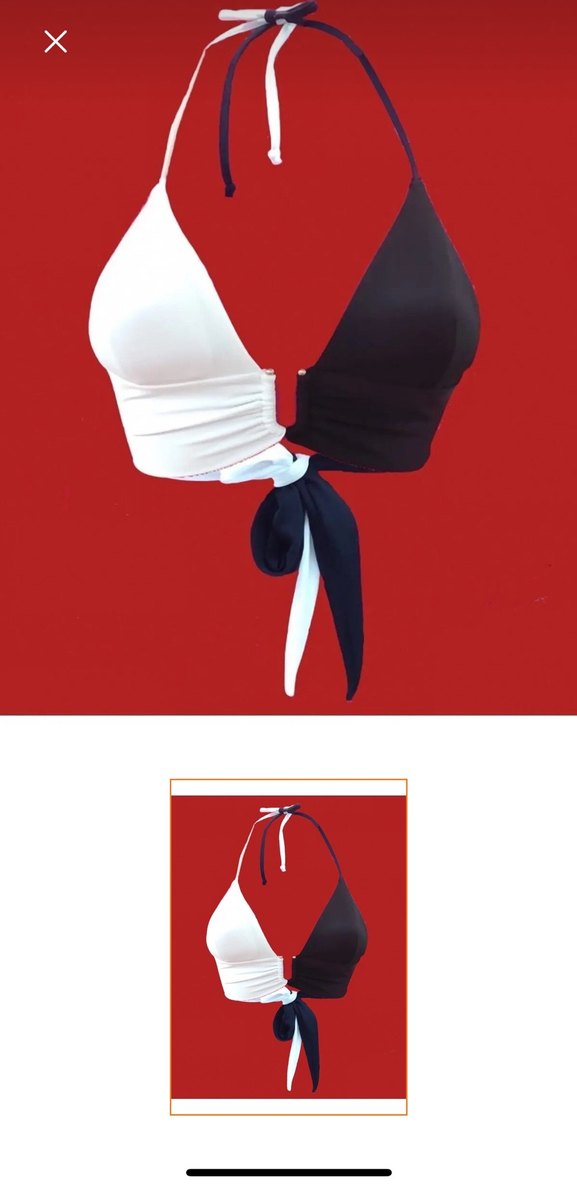 Kadınlara özel, siyah beyaz , kısa ve vücuda oturan halter yaka, askılı bikini. Kurdele detayı ile dikkat çeker.