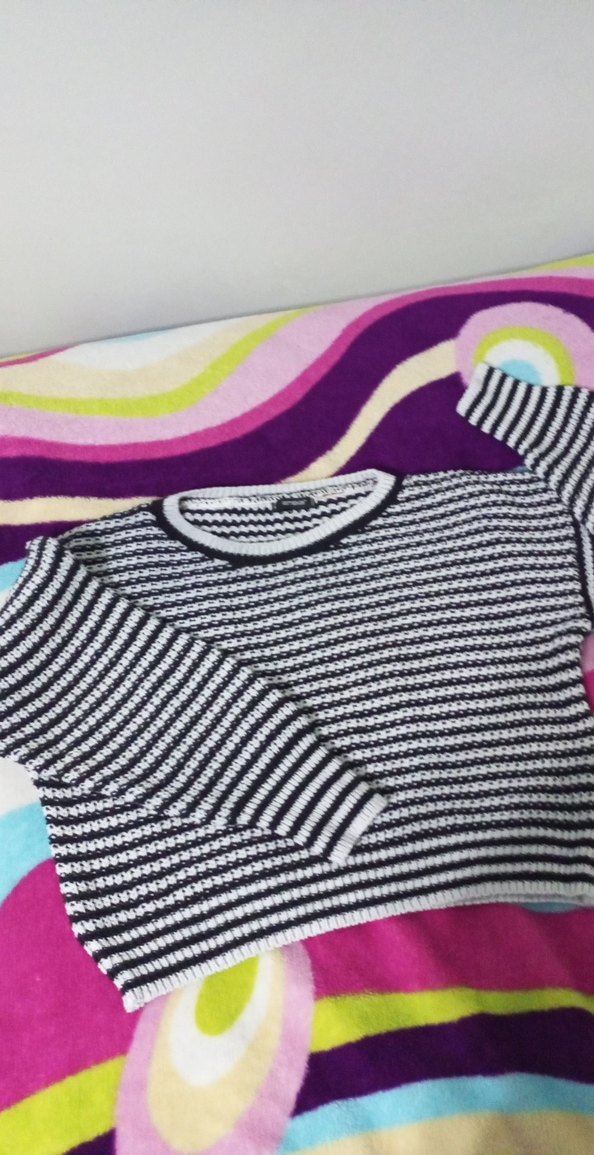 kadın siyah-beyaz çizgili kısa kesim kazak