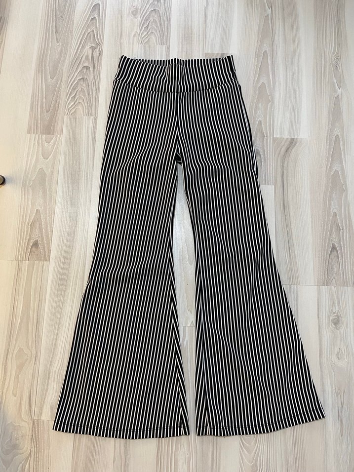 Kadın siyah beyaz Çizgili Kumaş Pantolon