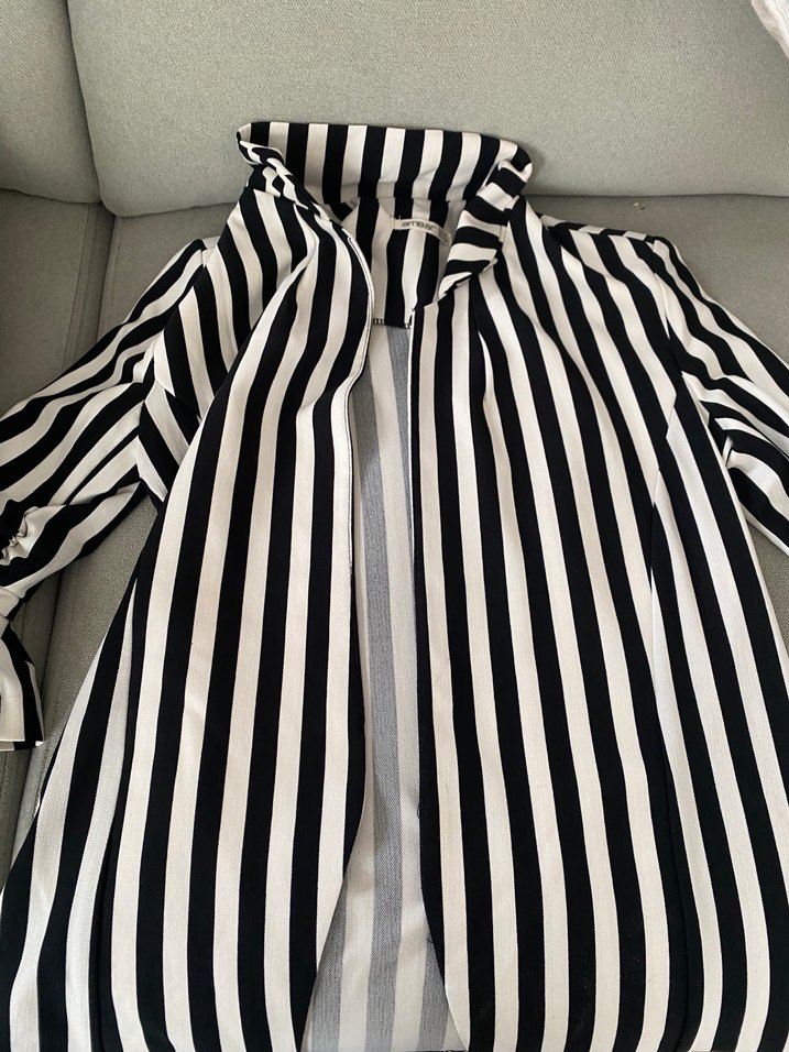 Kadın Siyah Beyaz Çizgili Pilili Ceket