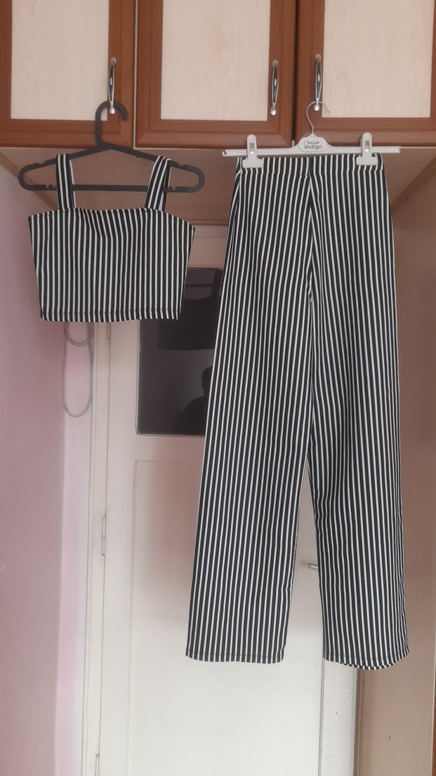 Kadın Siyah Beyaz Çizgili Pilili Pantolon