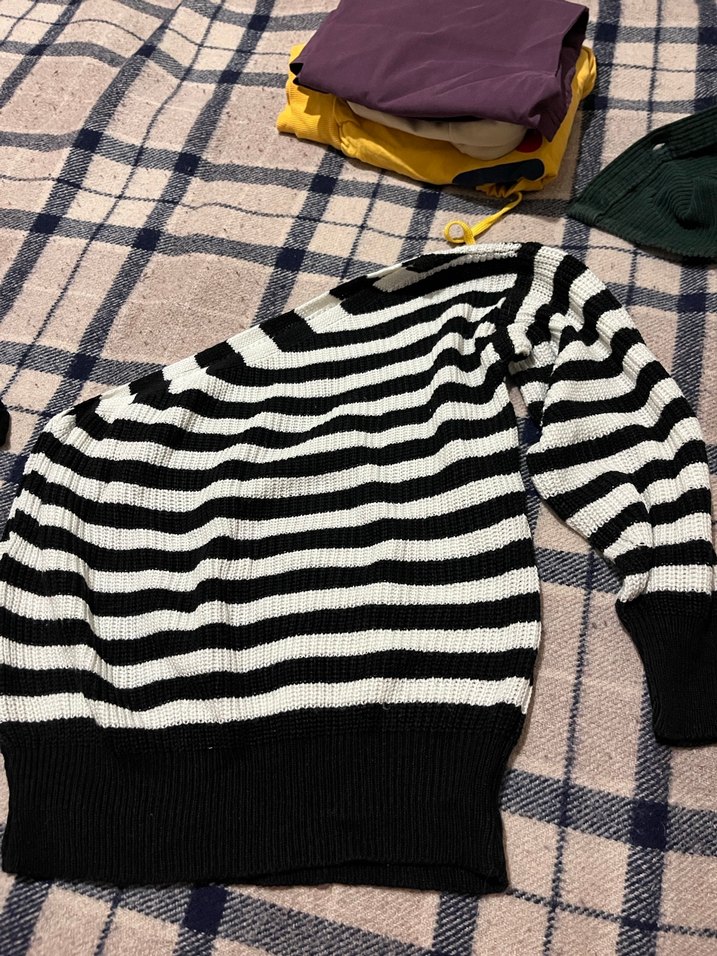 Kadın Siyah Beyaz Çizgili Triko Kazak