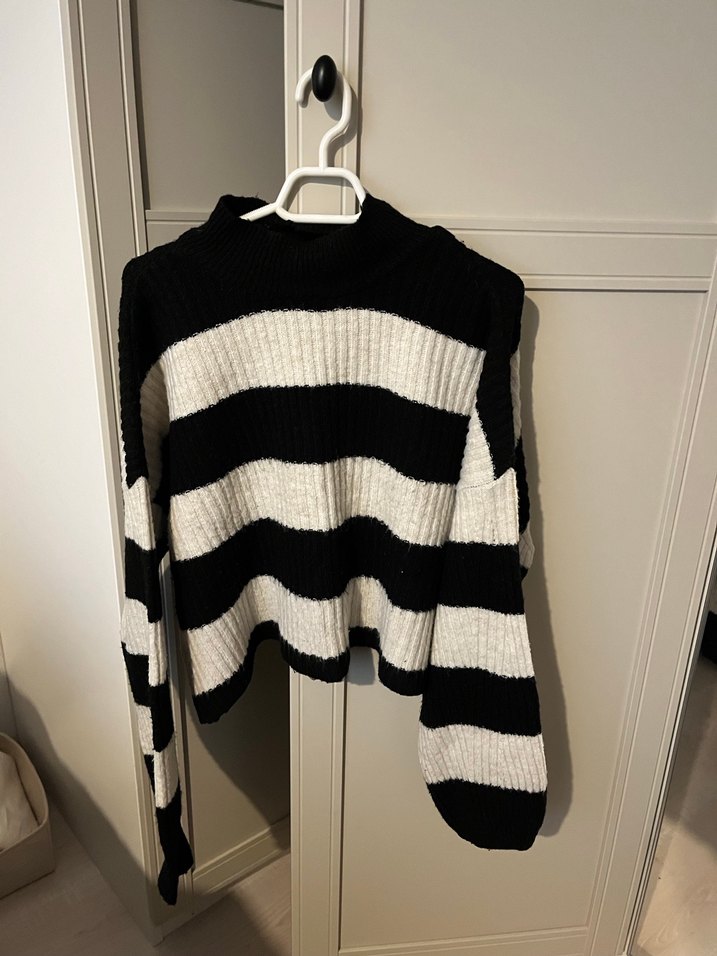 Kadın Siyah-Beyaz Çizgili Triko Kazak