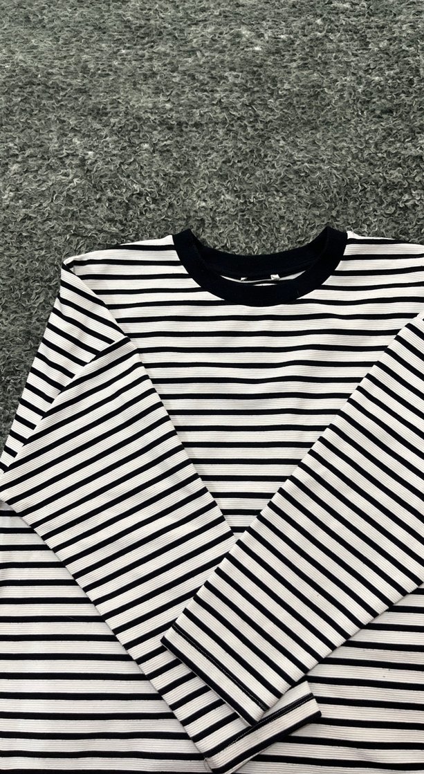 Kadın Siyah-Beyaz Çizgili Uzun Kollu Sweatshirt