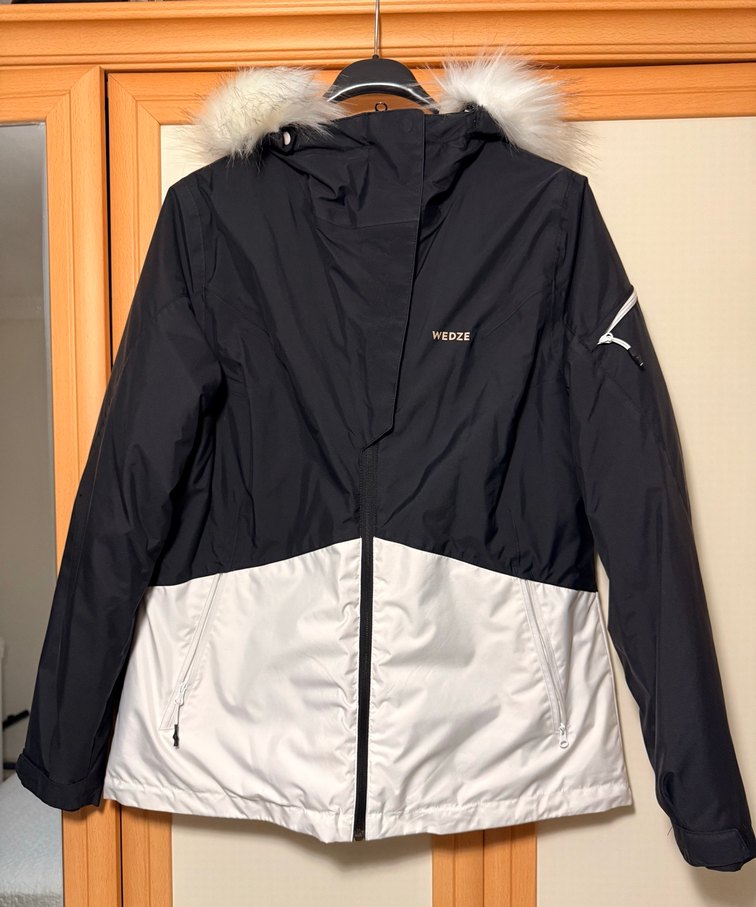 Kadınlar için fermuarlı, uzun kollu, dar kesim kar montu. Siyah ve beyaz renklerde, kapüşonunda yapay kürk detaylı, sokak stili için uygun. Ürün orijinal Decathlon malıdır. Su geçirmezdir.