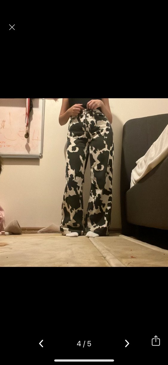 Kadın siyah beyaz inek Desenli Salaş Pantolon