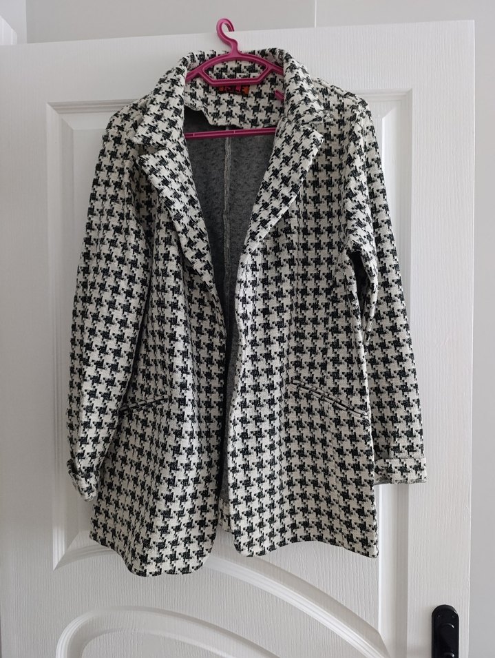 Kadın Siyah Beyaz Kazayağı Desenli Midi Kaban