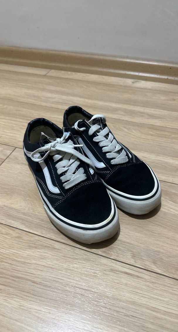 Kadınlar için siyah-beyaz renkte, düz tabanlı kauçuk spor ayakkabılar. Günlük kullanıma uygun, sade ve şık görünüme sahiptir.