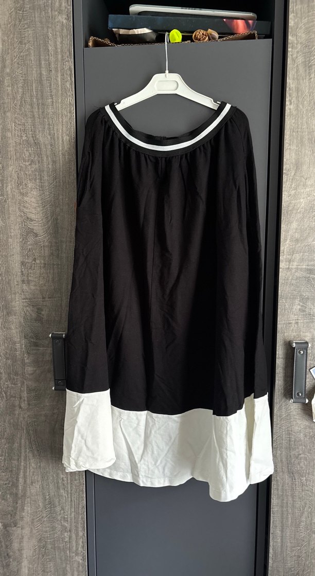Kadınlar için siyah keten uzun etek, bol kesim ve drapeli tasarıma sahiptir. Beyaz etek ucu detayı ile minimalist gotik tarzını yansıtır. Büyük beden cepleri var