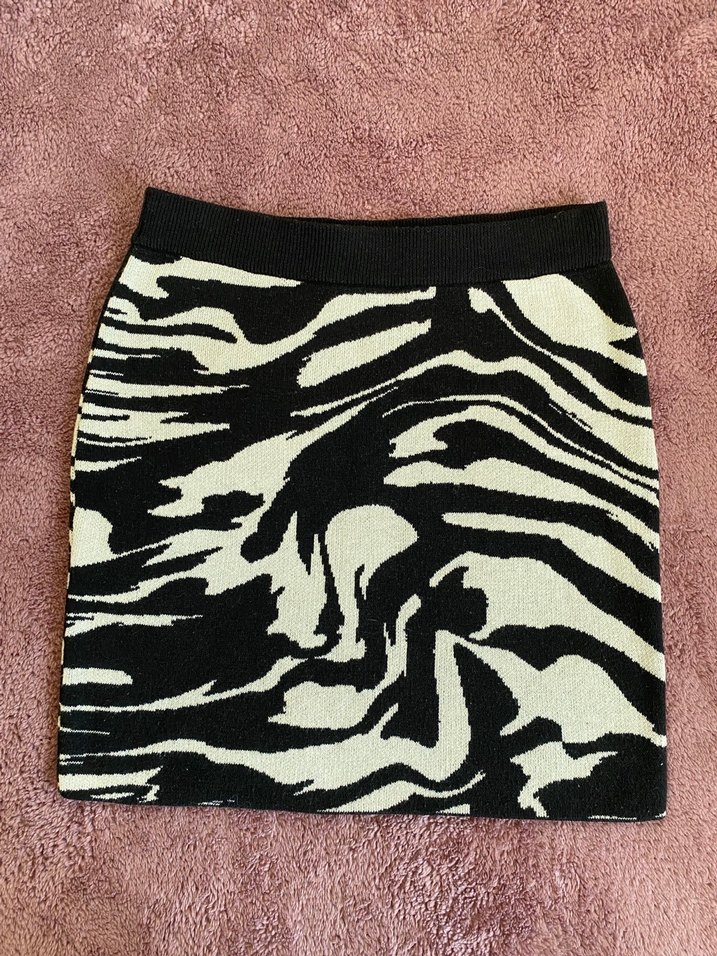 Kadın Siyah Beyaz Zebra Desenli Mini Etek