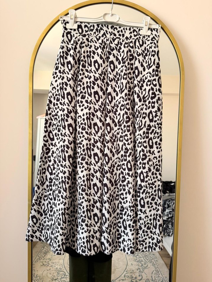 Kadın Siyah Beyaz Zebra Desenli Pilili Uzun Etek
