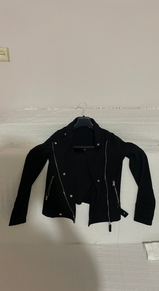 uzun kollu, fermuarlı detaylara sahip, normal midi uzunlukta, dar kesim biker ceket
